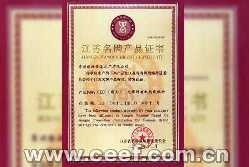 2013年,中國有機熱載體爐制造行業的龍頭企業:常州能源設備總廠有限公司(常能) 生產的先鋒牌有機熱載體爐獲得江蘇省名牌產品的稱號。